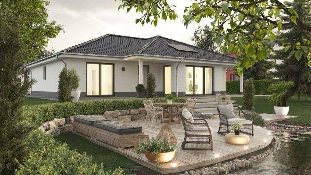 Der Bungalow überzeugt durch hochwertige Ausstattung, darunter Fußbodenheizung und eine moderne Luft-/Wasser-Wärmepumpe. Robuste Außenwände aus hochwärmedämmendem Porenbeton sorgen für Energieeffizienz. Alle Fenster sind mit 3-fach-Verglasung ausgestattet und Rollläden bieten zusätzlichen Komfort. Genießen Sie eine stilvolle Badausstattung sowie eine beste Wohnqualität dank der durchdachten Planung.