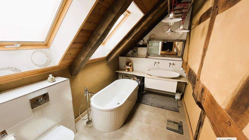 Auf einer Wohnfläche von ca. 120 m² erwarten Sie vier großzügige, lichtdurchflutete Räume, die mit Liebe zum Detail modernisiert wurden. Zwei gemütliche Schlafzimmer, eine großzügige Relax-Ecke und ein stilvolles Badezimmer schaffen ein harmonisches Wohnambiente - ideal für Paare oder Familien, die das Besondere suchen. Die Deckenhöhe von 2,20 m im Obergeschoss sorgt für eine gemütliche Atmosphäre und unterstreicht den authentischen Charakter des Hauses.