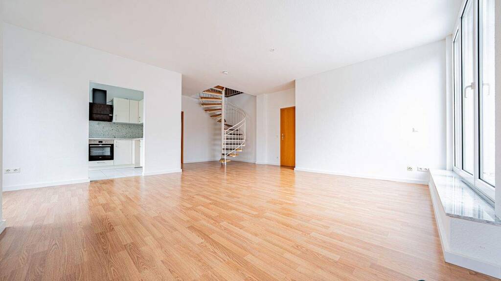 Bereits beim Betreten spürt man die Großzügigkeit dieser Wohnung: Der helle Wohnbereich beeindruckt durch bodentiefe, Fensterflächen und den Zugang zum sonnigen Süd-Balkon - ideal für entspannte Stunden im Freien. Eine elegante Wendeltreppe führt in das ca. 20 m² große Atelier im ausgebauten Dachspitz - ein idealer Rückzugsort für Kreative, Home-Office oder Gäste.