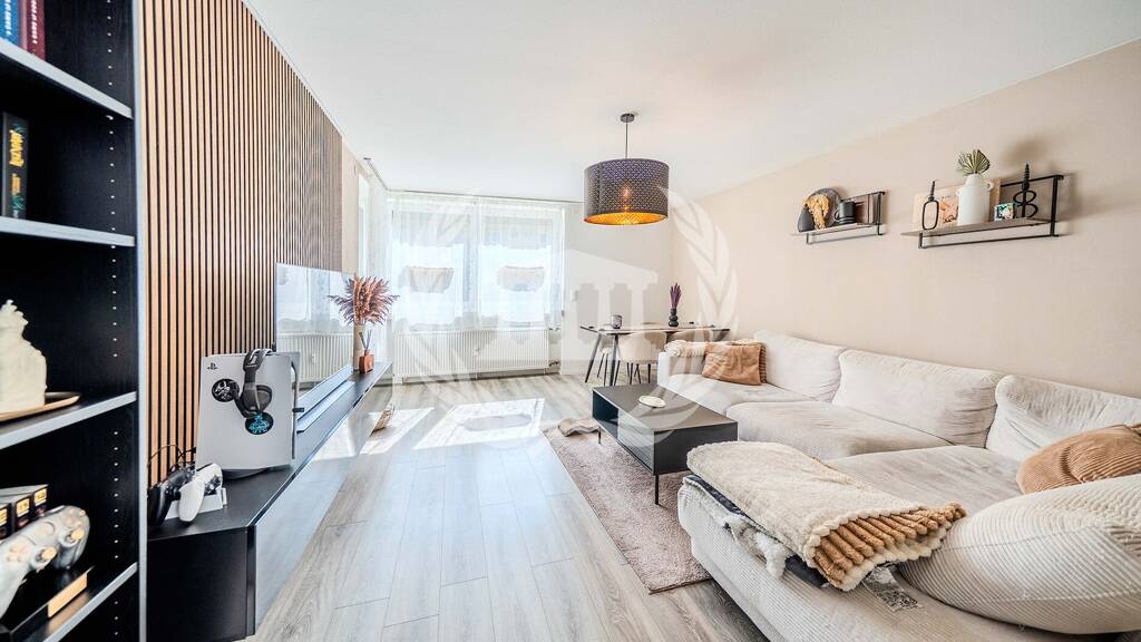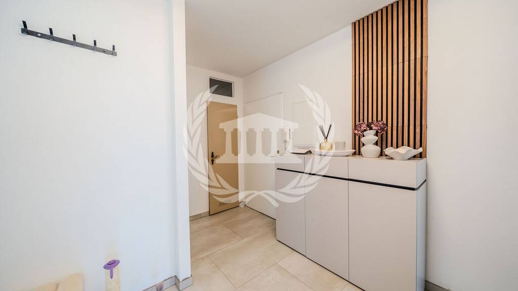Der zentrale Flur verbindet alle Räume der Wohnung und sorgt für eine klare Struktur. Das Wohnzimmer bildet den Mittelpunkt und bietet direkten Zugang zur großzügigen, sonnigen Loggia - ideal für entspannte Stunden im Freien. Die separate Küche ist funktional geschnitten und bereits mit einer hochwertigen Einbauküche ausgestattet.