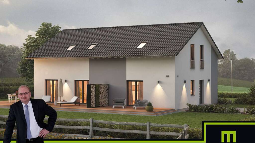 IM ANGEBOT ENTHALTEN: - Dieses tolle projektierte Energiesparhaus (KFW55 optional 40/40+) auf Bodenplatte - inkl. F R E I R A U M - Deckenhöhe 2,75m - inkl. Baugrunduntersuchung - inkl. Architektenleistung - inkl. hochwertiges Pfettendach - inkl. selbst reinigende Dachziegel - inkl. Dachrinnen und Fallrohr aus Titanzink - inkl. Außenputz - inkl. Moderne Haustür in massiver Ausführung mit Edelstahlgriff und Mehrfach Sicherheitsverriegelung - inkl. Dreifachverglaste Wärmeschutzfenster - inkl. Aluminium-Rollläden - inkl. Aussenfensterbänke - inkl. Material Luft-Wasser-Wärmepumpe inkl. Fußbodenheizung - inkl. Material kontrollierter Be- und Entlüftung mit Wärmerückgewinnung - inkl. Material für Sanitärrohinstallation - inkl. Elektropaket inkl. Montage - inkl. Treppe in verschiedenen Design-Varianten inkl. Montage - inkl. Klima-Plus Wände - inkl. Blower Door Test - inkl. Bauleistungsversicherung - inkl. Bauherren-Haftpflichtversicherung - inkl. Wohngebäudeversicherung - inkl. Feuer-Rohbauversicherung - Keller gegen Aufpreis möglich