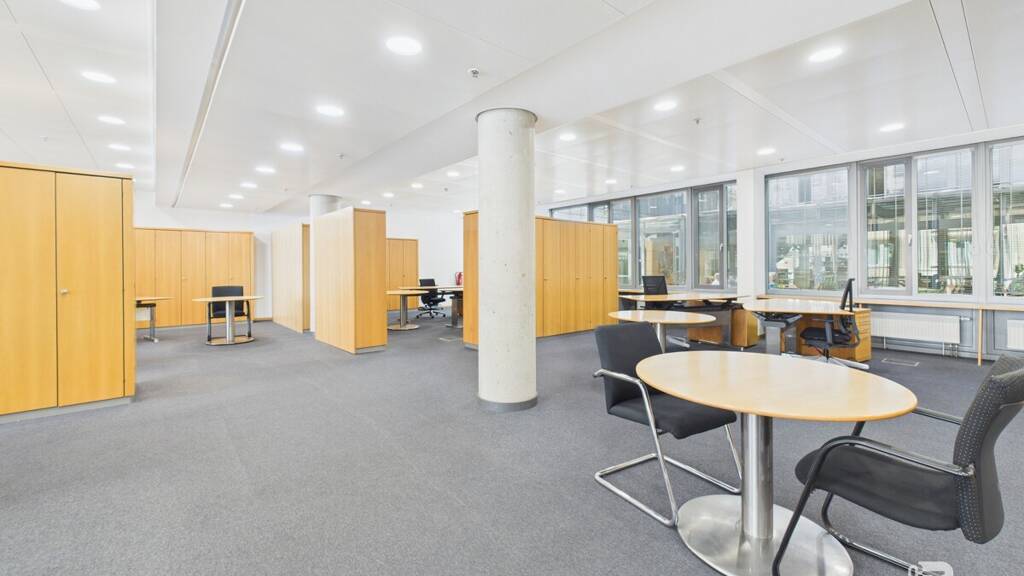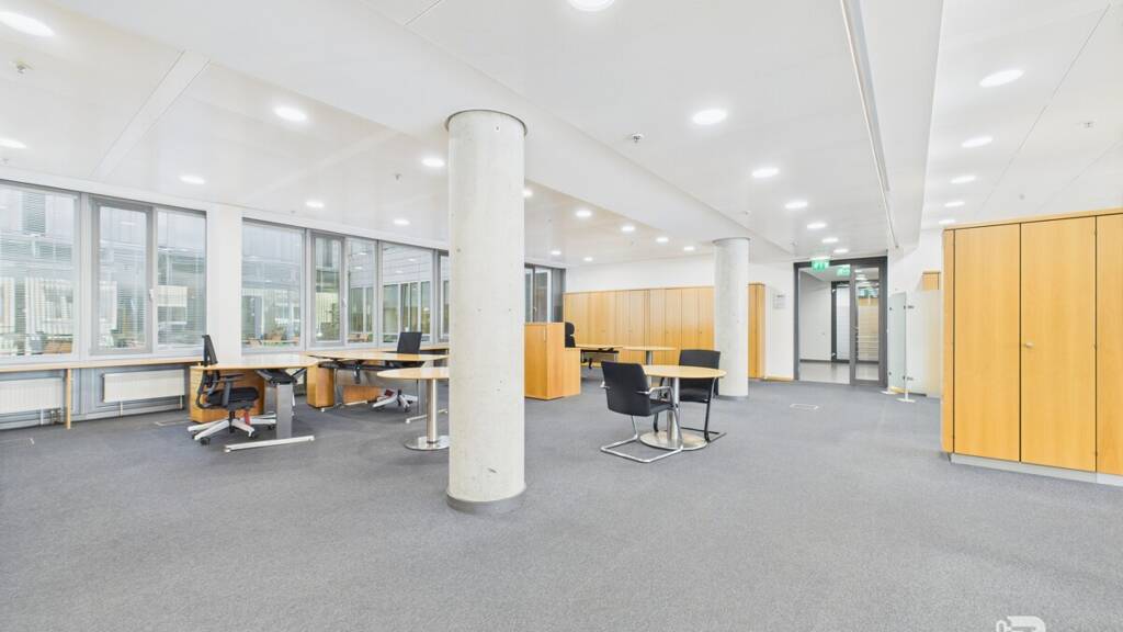 Der großzügige, gemeinschaftlich genutzte Eingangsbereich vermittelt einen einladenden ersten Eindruck und fungiert als zentraler Zugang zur Einheit. Von hier aus betreten Sie zwei separat zugängliche Büroräume. Ein weitläufiges Büro mit ca. 203,13 m², das sich hervorragend für ein modernes Open-Space-Konzept eignet, sowie ein kleineres Büro mit ca. 26,17 m² auf der gegenüberliegenden Seite der Etage, ideal als Geschäftsführerbüro oder Besprechungsraum. In diesem Bereich befindet sich zudem ein Flur mit einer separaten Teeküche samt Einbauküche. Ein besonderes Plus ist der im Eingangsbereich gelegene Aufzug, der einen direkten Zugang zur Tiefgarage bietet, in der auf Wunsch Stellplätze angemietet werden können. Ebenfalls im Eingangsbereich stehen separate Sanitäreinrichtungen für Damen und Herren zur Verfügung.