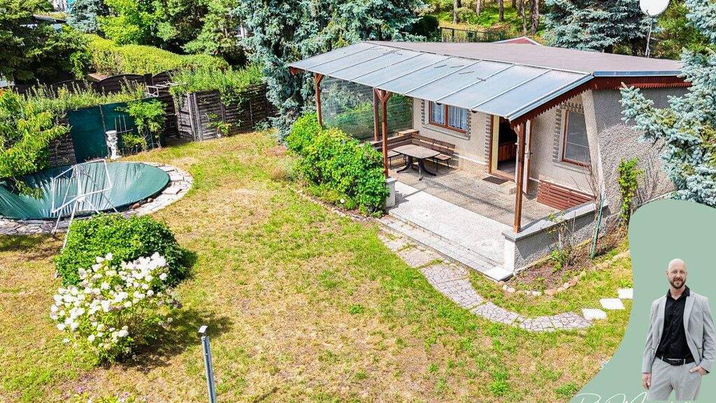 Sie suchen einen Rückzugsort im Grünen, der Ruhe, Erholung und Lebensqualität vereint? Dann wird Sie dieses idyllische Pachtgrundstück mit charmantem Bungalow begeistern!
