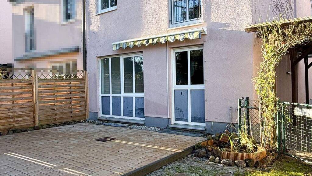 Der kleine, aber gemütliche Garten bietet trotz seiner überschaubaren Größe eine hohe Aufenthaltsqualität. Eine große Terrasse lädt zum Entspannen, Grillen und Beisammensein ein. Zudem gibt es einen separaten Platz für eine Feuerschale, ideal für stimmungsvolle Abende im Freien.