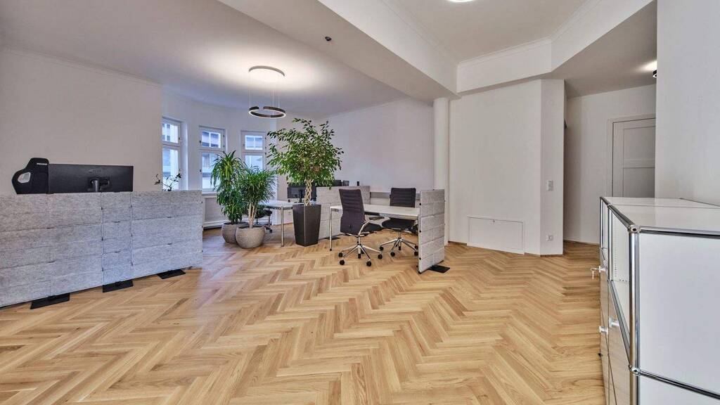 Bereits der großzügige, helle Eingangsbereich vermittelt einen repräsentativen ersten Eindruck - ideal für Empfang oder Wartebereich. Mehrere flexibel gestaltbare Räume bieten Platz für zwei bis drei Büroräume, Besprechungszimmer oder individuelle Arbeitszonen. Auch die Einrichtung eines Ankleide- oder Archivraums ist möglich.