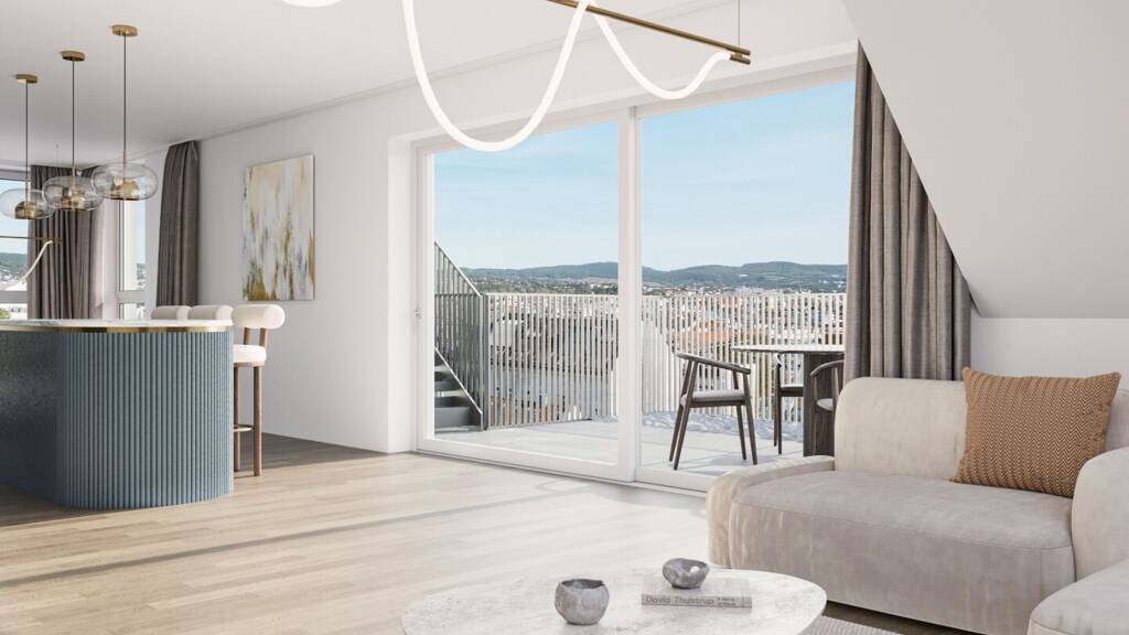 In einer verkehrsberuhigten Sackgasse und direkt am Arik-Brauer-Park gelegen entstehen 150 hochwertige Eigentumswohnungen mit Wohnflächen von ca. 30 m² bis 130 m², die für unterschiedlichste Lebensbedürfnisse und Wohnkonzepte ausgelegt sind. Die Wohnungen bieten attraktive Extras wie private Gärten, Balkone, Loggien und eine beeindruckende Panorama-Terrasse, die einen atemberaubenden 360° Panoramablick über Wien eröffnet. Mit großzügigen Raumhöhen schaffen wir ein offenes und luftiges Wohngefühl. Darüber hinaus stehen Tiefgaragenstellplätze zur Verfügung und moderne Energiekonzepte, wie Photovoltaik und Fernwärme, garantieren eine nachhaltige und effiziente Energieversorgung. Hier wohnen Sie stilvoll, zukunftsorientiert und überaus komfortabel.