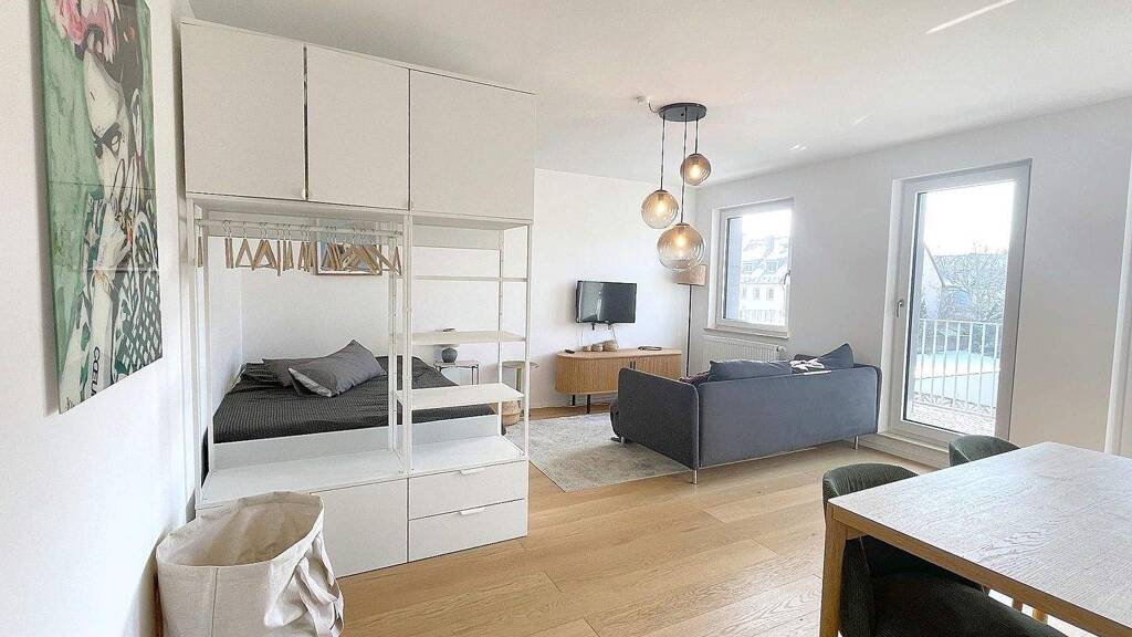 This high-quality, fully furnished studio apartment impresses with a well-thought-out layout and modern interior design.