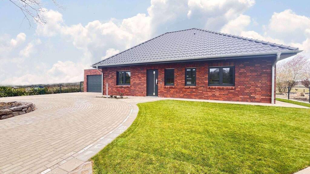 Provisionsfrei für Käufer: Dieser exklusive Winkelwalmdachbungalow wird in schlüsselfertiger Bauweise in einer erstklassigen Lage (Sackgasse - Lückenbebauung) der Gemeinde Heede für sie erstellt. Je nach Baustand können sie noch Einfluss auf die Ausstattung nehmen und Ihre persönlichen Wünsche einbringen. Der Bungalow verfügt über einen gutdurchdachten effizienten Grundriss und bieten Platz für Ihre Familie. Von der Diele aus sind alle Räumlichkeiten auf kurzem Weg erreichbar. Der Schlaftrakt verfügt über 2 Schlafzimmer und ein großzügiges Badezimmer. Vom Elternschlafzimmer haben Sie, genauso wie vom Wohnzimmer, direkten Zugang zur teilüberdachten Terrasse. Durch die Ebenerdigkeit eignet sich der Bungalow auch ideal für Rentner oder Rollstuhlfahrer. Rufen sie uns an. Wir freuen uns auf Ihren Besuch.