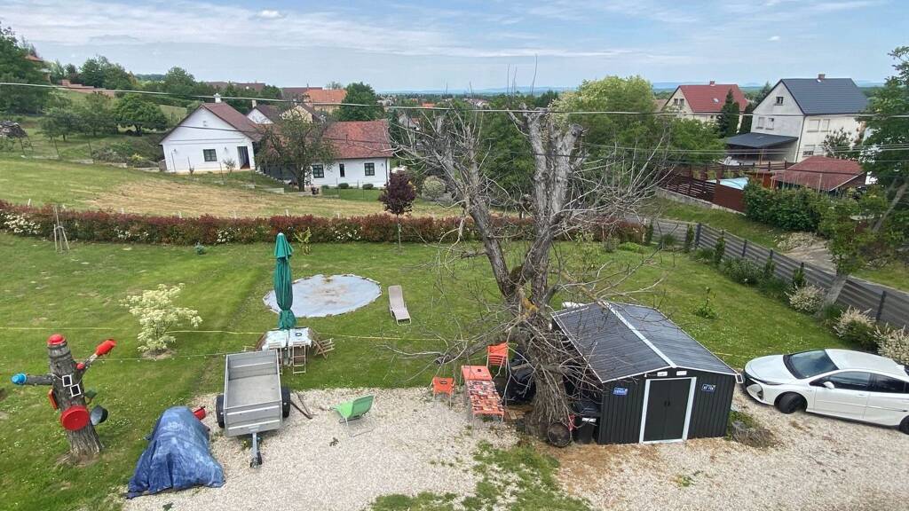 Dieses 1.400 m² große, gepflegte Baugrundstück liegt in ruhiger Hanglage und bietet bei schönem Wetter einen einzigartigen Ausblick – bis hin zum Balaton, dem Badacsony und weiteren Zeugenbergen der Region.