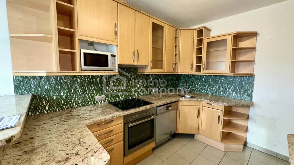 Die Wohnung ist mit Fliesen und Laminat ausgestattet und verfügt über eine moderne Einbauküche, die das Kochen zu einem Vergnügen macht. Ein geräumige Badezimmer mit Badewanne, Waschbecken und Dusche.