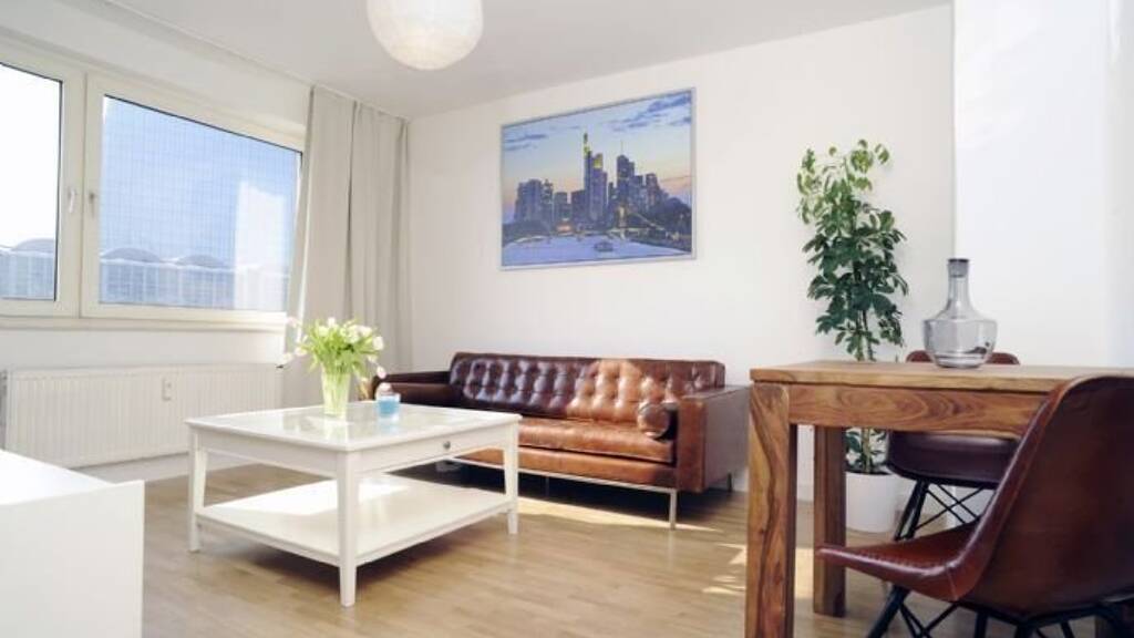 Objektbeschreibung Ihre neue 2-Zimmer-Wohnung befindet sich in unmittelbarer Nähe zum spektakulärsten Wolkenkratzer der Stadt. Sie blicken direkt auf das pulsierende Mainufer sowie auf die neue EZB, die sich direkt auf der anderen Straßenseite befindet. Die attraktiven 2-Zimmer Wohnung befinden sich im 4. OG eines gepflegten Mehrfamilienhauses. Die Wohnung wurde 2020 (!) kernsaniert und wird nun im vollständig und wertig möbliert angeboten (inkl. EBK mit Geschirrspuler, Waschmaschine). Auf Wunsch lässt sich – je nach Verfügbarkeit – auch eine Garage oder ein Stellplatz auf dem Gelände anmieten.