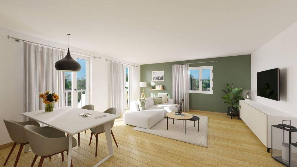 Die Wohnung B 1 liegt im Erdgeschoss und bietet ca. 70 m² Wohnfläche mit großzügigem Wohn-/Essbereich, zwei Schlafzimmern, Badezimmer, Abstellraum und Terrasse mit Garten.