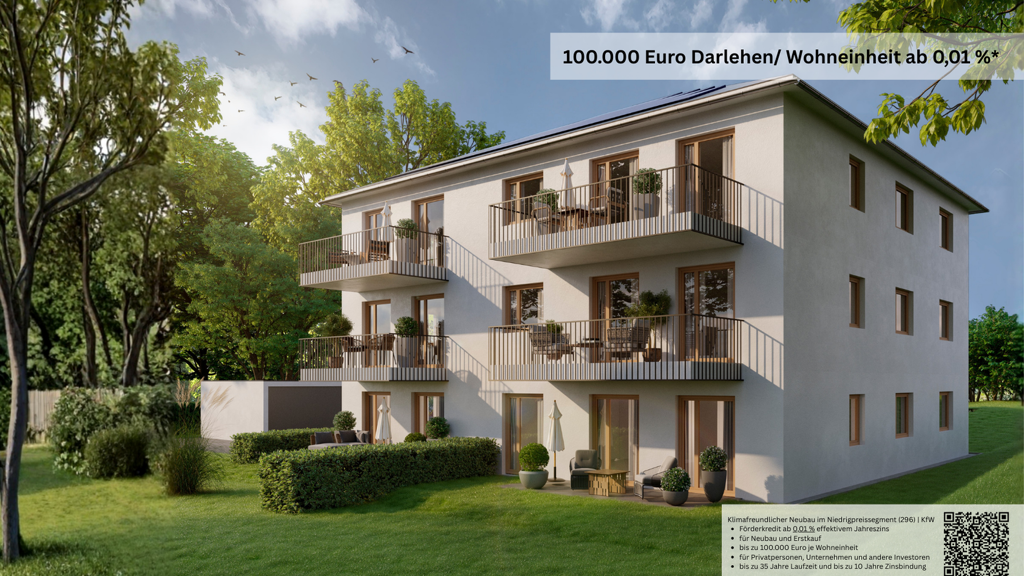 Nutzen Sie auch den Vorteil einen Kredit über die KfW-Bank in Höhe von 100.00,- Euro mit einem Zinssatz von aktuell 0,01 % in Anspruch zu nehmen (Kredit 296)!