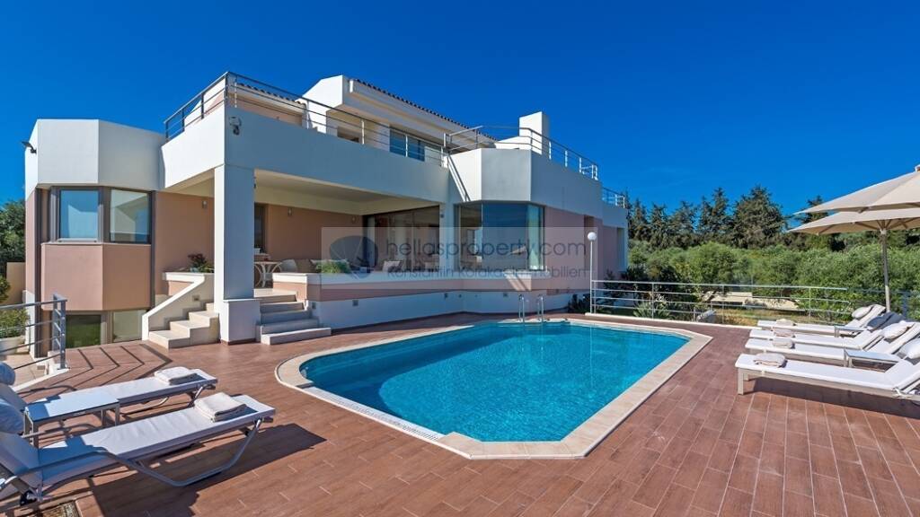 Eine exquisite Villa mit einer Wohn-/Nutzfläche von 520 m² auf einem ruhigen ca. 2.800 m² großen Privatgrundstück mit absoluter Privatsphäre und spektakulärer Aussicht auf das kretische Meer.