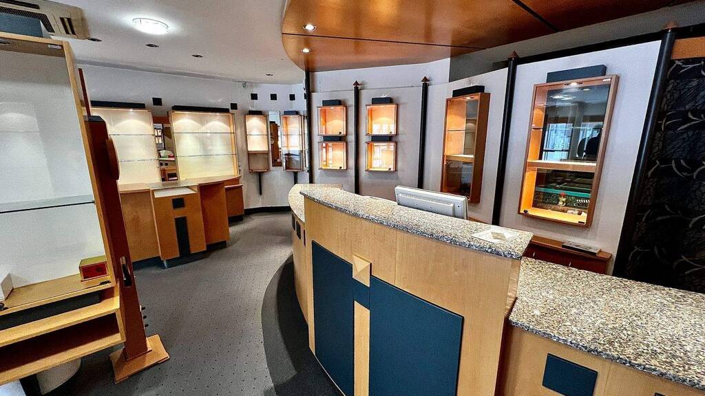 Das ehemalige Juwelier ist hinter der Verkaufsfläche noch mit zwei Räumen und einem WC ausgestattet.