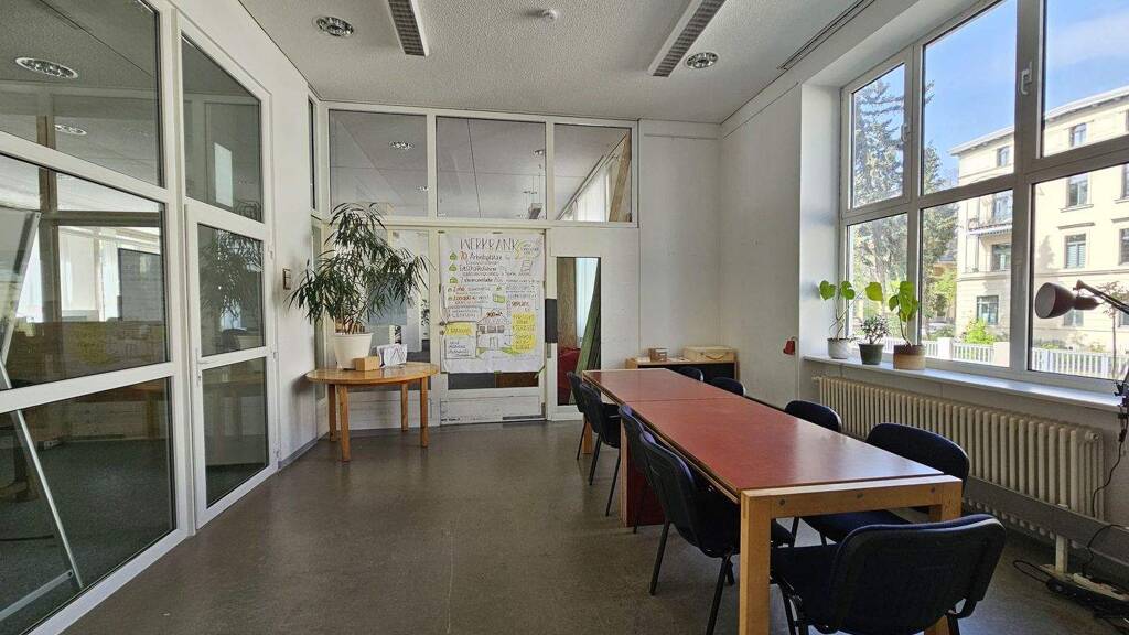 22,85 m² Einzelbüro (Raum E.06) + 200m² Gemeinschaftsfläche + günstige Pauschale für Internet, Strom und Heizung: All das bietet die WerkBank in der Schubertstraße 10 ? Weimars einziges Geschäftshaus im kollektiven Eigentum der Mieter*innen.