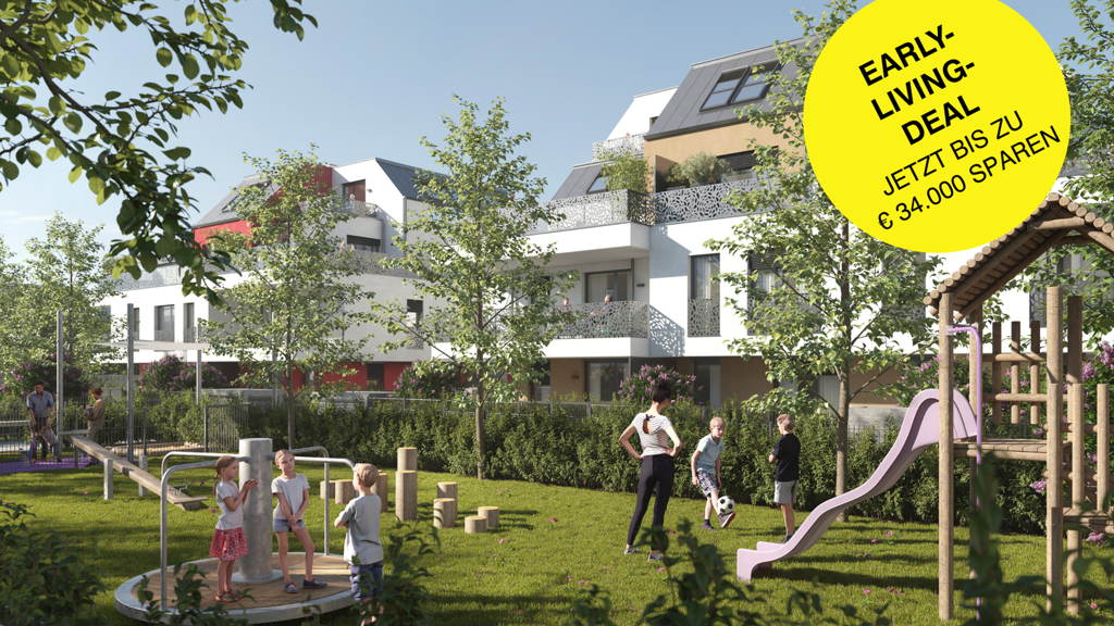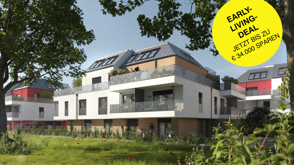 Kurzbeschreibung Hochwertige Neubauwohnungen mit nachhaltiger, energieeffizienter Bauweise und großzügigen Freiflächen. Ruhige Lage im Grünen mit bester Anbindung an das Wiener Zentrum. Ideal für alle, die Komfort und zeitgemäßes Design schätzen. Objekt Sichern Sie sich Ihren Early-Living-Deal und sparen Siejetzt bis zu € 34.000 bei Ihrer Traumwohnung: