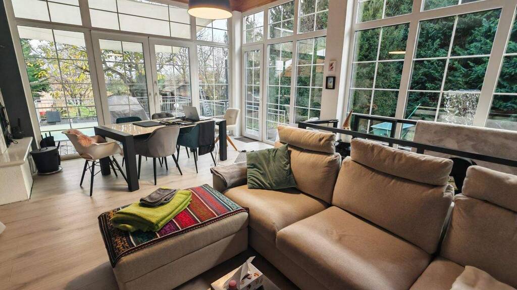 Der Kamin im Wohnbereich sorgt für wohlige Wärme und Gemütlichkeit, während die Klimaanlage an heißen Tagen für angenehme Kühle sorgt. Ein lichtdurchfluteter Wintergarten bietet einen herrlichen Blick auf den Garten und lädt zum Verweilen ein. Der Dachboden bietet zusätzlichen Stauraum. Der neuwertige Zustand des Hauses spricht für die hochwertige Bauweise, die durch die effiziente Gas-Zentralheizung ergänzt wird und Ihnen eine zuverlässige Wärme bietet.