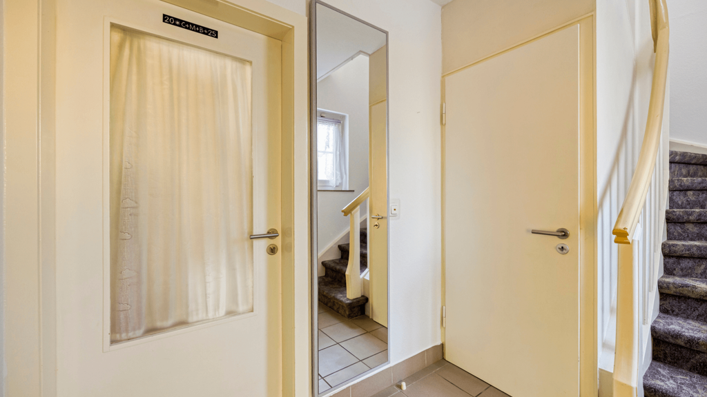 Das Haus verfügt über insgesamt 6 Zimmer und 2 Bäder, die sich über zwei Etagen verteilen. Jede Wohnung bietet ausreichend Privatsphäre und Komfort, perfekt für zwei Familien oder eine Familie, die Gäste unterbringen möchte.