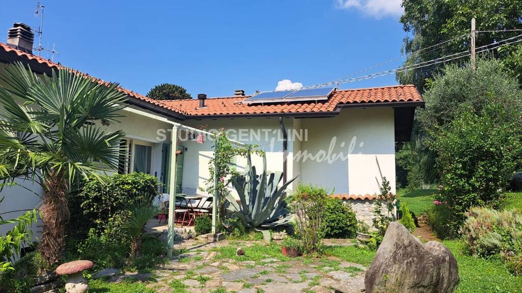 In Castelveccana, im Ortsteil Sarigo, bieten wir ein renoviertes Haus in sonniger Lage, am Waldrand und mit Panoramablick zum Verkauf an. Das Haus ist auf zwei Ebenen, im Hochparterre, auf Gartenebene, eine fertige Wohnung von ca. 130 qm, bestehend aus Eingangshalle, offener Küche und Esszimmer, zwei Schlafzimmer und ein Arbeitszimmer, zwei Bäder, Wohnzimmer mit Kamin und kleinem Balkon, während im Untergeschoss gibt es Räume, die bewohnbar sind, aber noch rustikal. Es gibt eine thermische Solaranlage und eine autonome LPG-Heizung. Zum Anwesen gehören eine Garage, ein Garten und mehrere Waldgrundstücke.