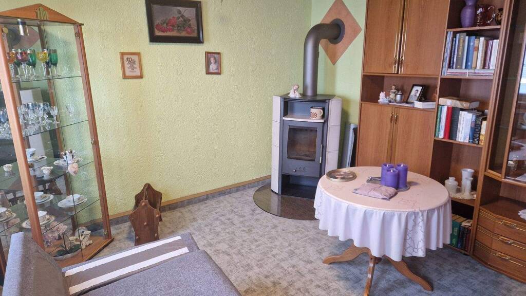 Im Wohnzimmer befindet sich ein Kaminofen. Ansonsten wird das Haus mit einer Gasheizung beheizt.