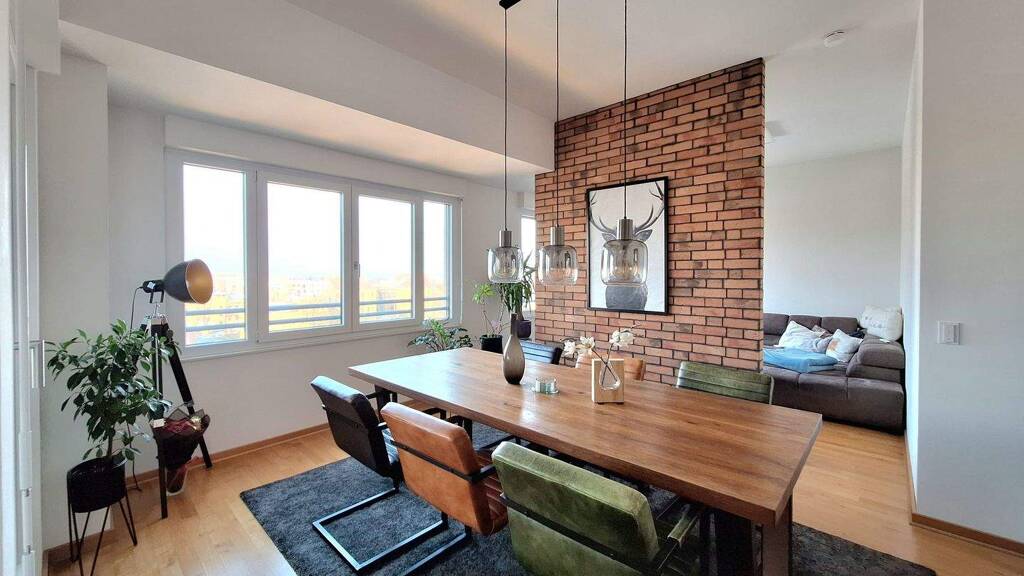 Diese attraktive 4-Zimmer-Wohnung befindet sich in einer begehrten Wohnlage und ist Teil eines modernen Mehrfamilienhauses, das im Jahr 2020 umfassend modernisiert wurde. Der im Gebäude vorhandene Aufzug, der bis in den Keller fährt, ermöglicht einen barrierearmen Zugang zu allen Etagen - und damit auch direkt zur Wohnung. Mit einer großzügigen Wohnfläche von ca. 126 m² bietet die Wohnung ausreichend Raum für individuelle Wohnideen und ein komfortables Zuhause. Das Herzstück der Wohnung ist das weitläufige Wohn- und Esszimmer, das durch seine offene Gestaltung und den direkten Zugang zum Balkon ein helles und einladendes Ambiente schafft. Die moderne Einbauküche fügt sich harmonisch in den Wohnbereich ein und ist ideal für gesellige Abende mit Familie und Freunden. Neben dem Wohnzimmer stehen drei weitere Zimmer zur Verfügung, die sich flexibel als Schlafzimmer, Kinderzimmer oder Büro nutzen lassen. Bodentiefe Fenster sorgen in allen Räumen für viel Tageslicht und eine freundliche Atmosphäre. Sämtliche Fenster sind mit Rollläden ausgestattet, die zusätzlichen Komfort und Sicherheit bieten. Die Wohnung verfügt über zwei modern und geschmackvoll gestaltete Badezimmer. Ein Badezimmer ist mit einer Badewanne ausgestattet, während das zweite - direkt vom Schlafzimmer aus zugänglich - über eine Dusche verfügt. Bei Bedarf kann zudem ein Tiefgaragenstellplatz angemietet werden. Sie sind interessiert? Dann stellen Sie gern eine Online-Anfrage!