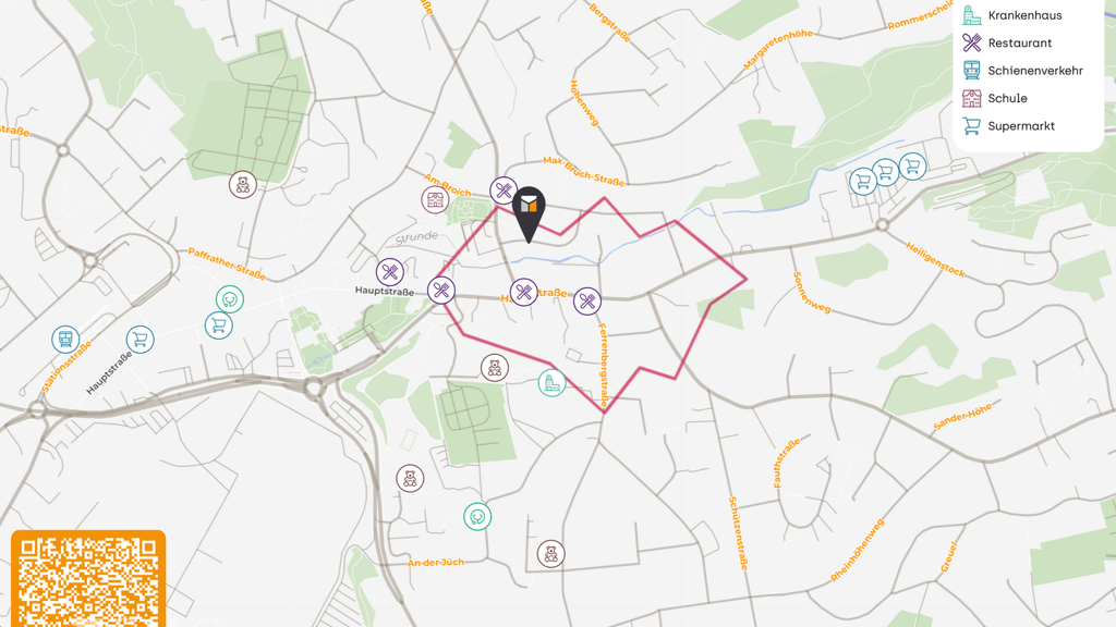 Die Hauptstraße, in der sich die Immobilie befindet, ist eine lebendige Geschäftsstraße mit einer Mischung aus Einzelhandel, Gastronomie und Dienstleistungen. Diese Vielfalt trägt zur Stabilität und Wertsteigerung der Immobilie bei und bietet potenziellen Mietern eine attraktive Umgebung.