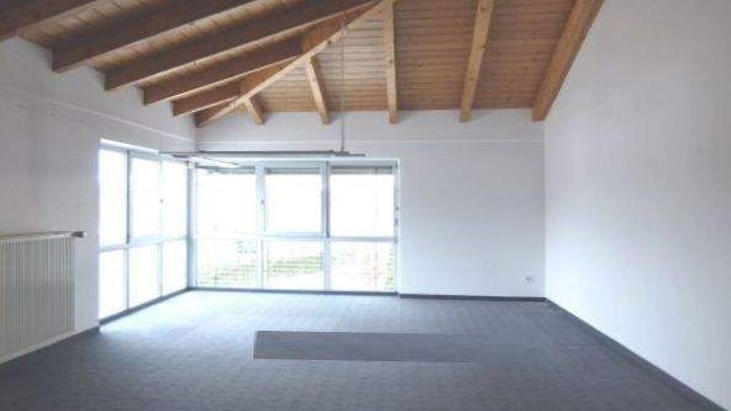 Im Obergeschoss befinden sich zwei zusammen anmietbare Büroräume. Durch die Dachschräge entsteht ein Loftcharakter, Die Deckenhöhe beträgt von ca. 2,5 m bis 4.0 m. Der Sozialraum ist mit Laminat in Fliesenoptik verlegt und hat eine Einbauküche. Die Umnutzung zu einem Büro ist möglich. Das Büro ist mit Teppichboden ausgelegt und die EDV-Verkabelung verläuft in Bodenkanälen. Es ist aufgrund der großen und bodentiefen Fenster sehr hell und freundlich.