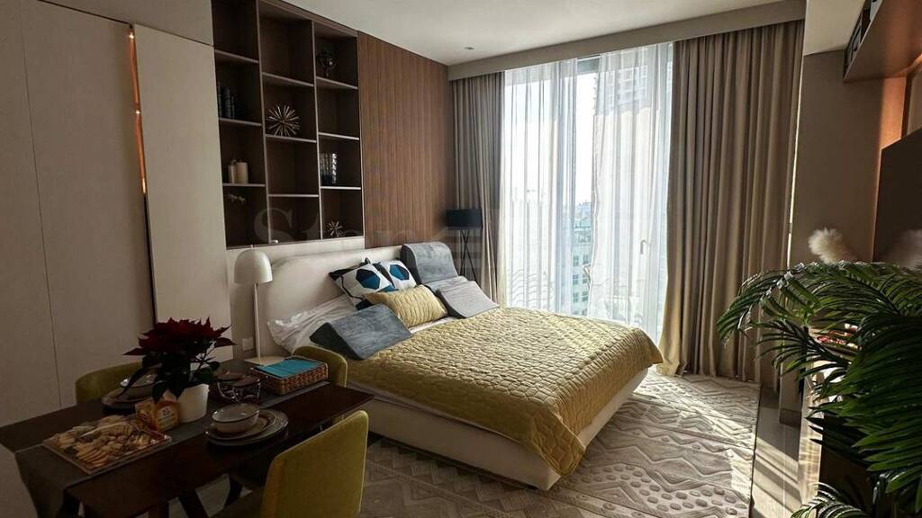 Das Studio ist hochwertig ausgestattet ? moderne Küche mit eingebauten europäischen Geräten, stilvolle Beleuchtung und elegantes Bad mit edlen Materialien. Dank durchdachter Stauraumlösungen und Smart-Home-System ist das Wohnen hier besonders bequem.