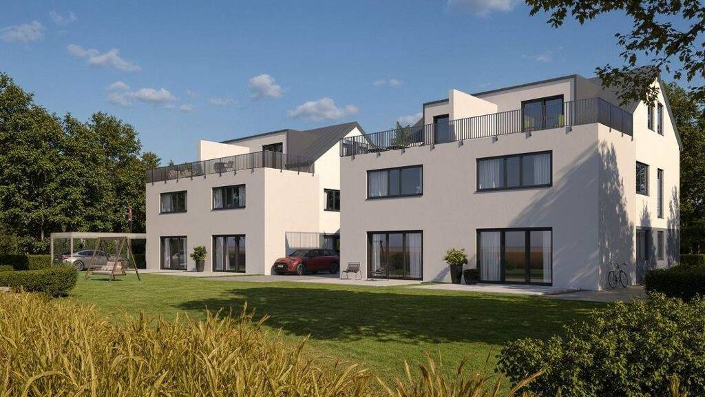 •Wohnfläche: ca. 148 m² auf drei Ebenen mit Spitzboden-Reserve •Zimmer: 5 Zimmer (z. B. Wohn-/Essbereich, drei Schlafzimmer, Homeoffice, Gästezimmer) •Terrassen: Sonnige Dachterrasse & Gartenterrasse mit Südausrichtung •Energieeffizienz: Modernes Energiekonzept im KfW-55-Standard (geringe Nebenkosten, förderfähig) •Heizung: moderne Wärmepumpentechnik mit Fußbodenheizung •Architektur: klare Linien, hochwertige Materialien, moderne Fassadengestaltung •Fensterflächen: bodentiefe Verglasung für maximale Lichtdurchflutung •Bäder: stilvoll und hochwertig ausgestattet •Grundstücke: sonnige Gartenanteile mit unverbaubarer Aussicht •Stellplatz: direkt am Haus, Carport oder Garage möglich _______________________________________