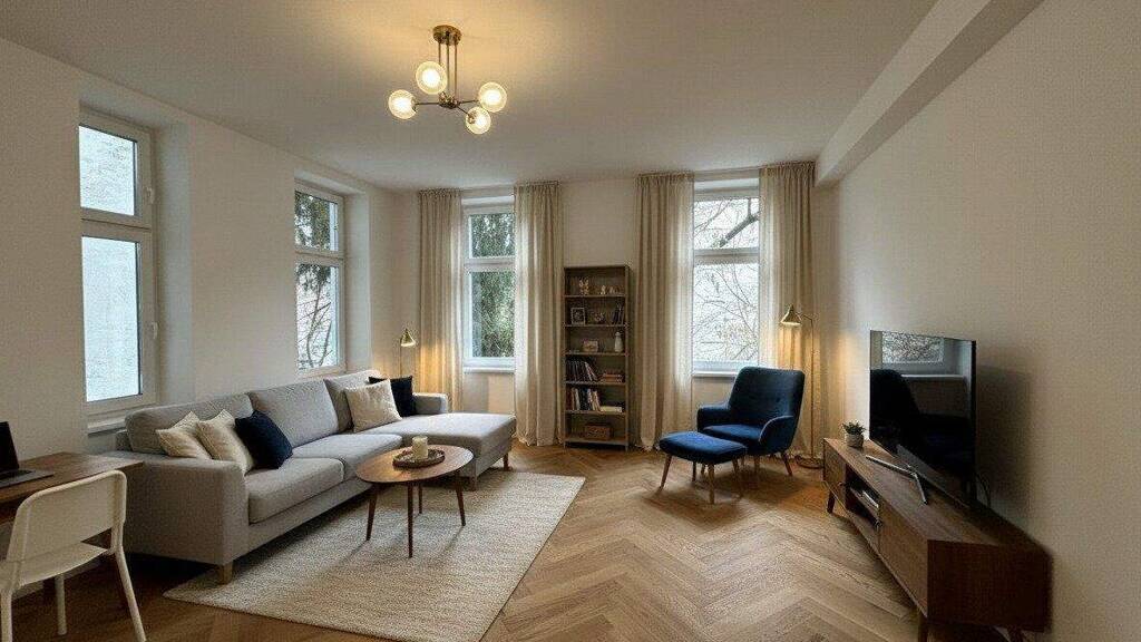 Bei den möblierten Fotos handelt es sich um KI/generiertes Homestaging, das Objekt wird unmöbliert verkauft, Badezimmer/WC bleiben im Objekt.