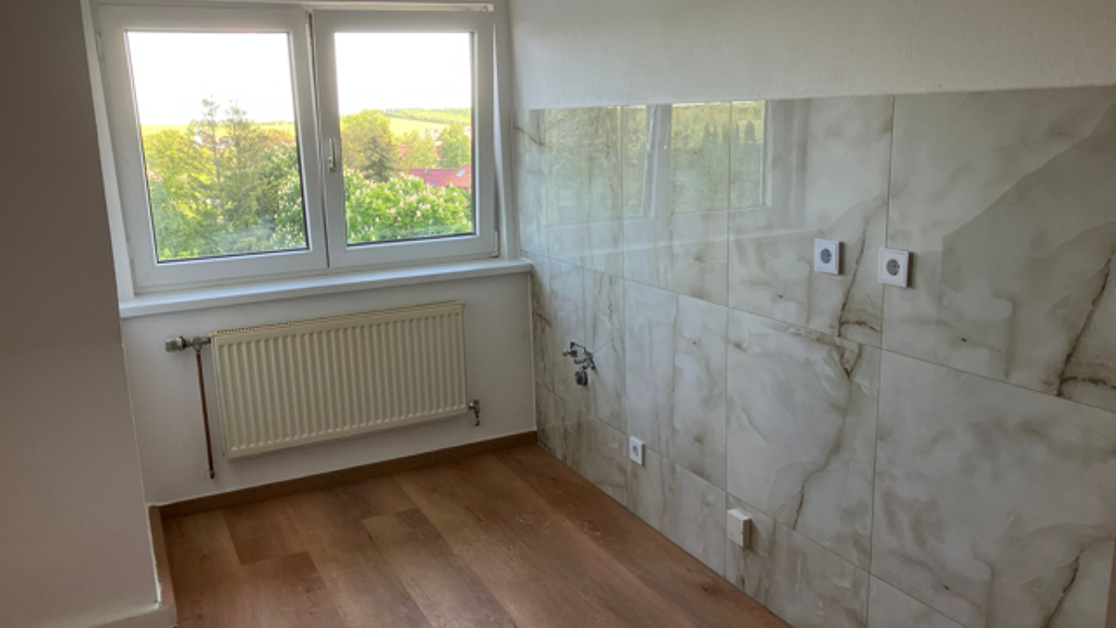 Neu renovierte Wohnung mit Blick auf den Harz zu vermieten. Die Wohnung befindet sich in einem kleinen Wohngebiet mit viel Grün. Ein Kindergarten sowie eine Schule sind fußläufig erreichbar.