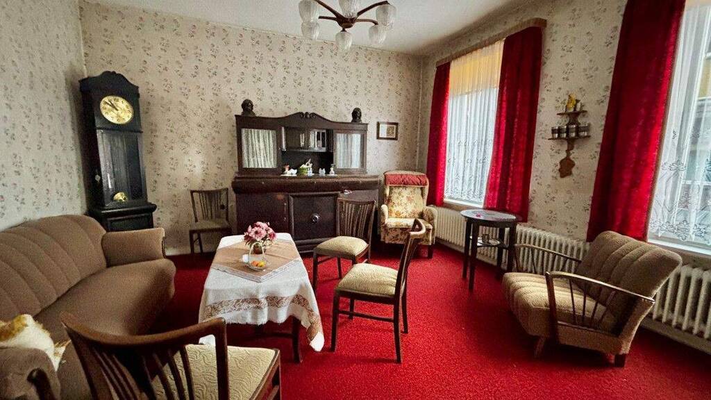 - Wohn- und Geschäftshaus mit drei Etagen (Erd-, Ober- und Dachgeschoss) - Abrissreifer Zustand / Sanierungsbedürftig - Massivbauweise mit Klinkerfassade - Satteldach mit Tonziegeln - Holztreppenhaus mit Geländer - Einfach verglaste Kunststoff- und Holzfenster - Heizkörper in allen Wohnräumen vorhanden (Heizung älteren Baujahrs) - separater Eingang zum Wohnbereich - viele Zimmer