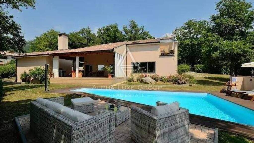 In der idyllischen Kulisse von Buzet in Istrien, bekannt als die Stadt der Trüffel, befindet sich eine moderne Villa - ein Zeugnis eleganten Wohnens. Diese preisgekrönte Villa mit 285m² Wohnfläche, zuzüglich einer 36m² Garage und einem Keller, liegt auf einem beeindruckenden 3030m² großen Grundstück. Buzet, umgeben von üppigen Hügeln und historischen Steinmauern, ist berühmt für seine unberührte Natur und reiche Gastronomie, insbesondere für Trüffel aus den Wäldern des Mirna-Tals.