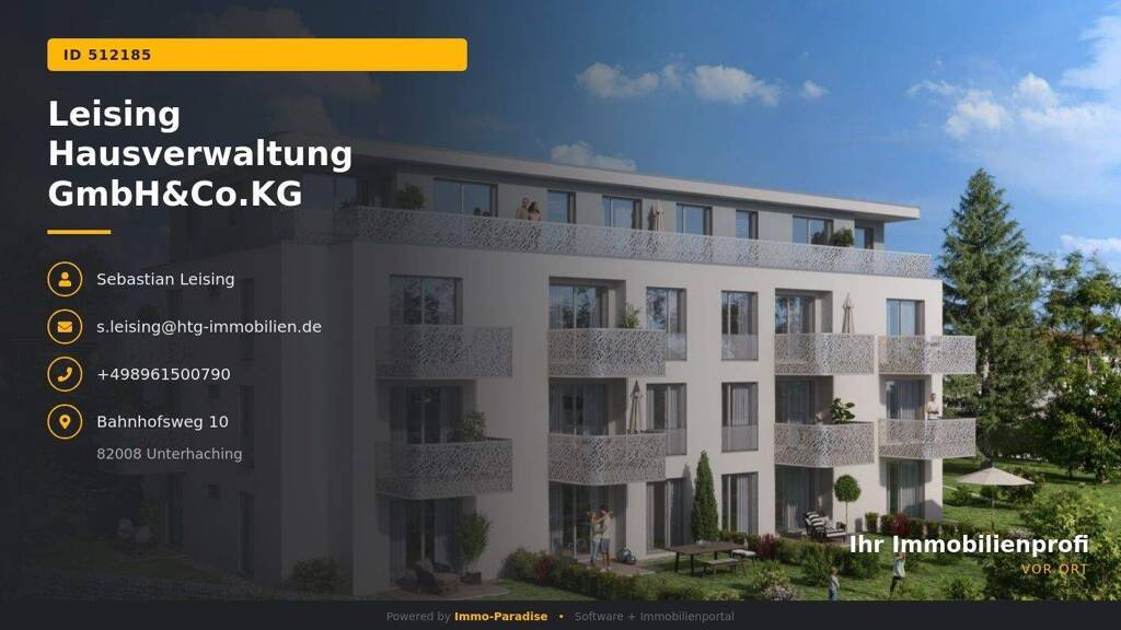 Leising Hausverwaltung GmbH&Co.KG Stichworte Nutzfläche: 53,93 m², Anzahl der Schlafzimmer: 1, Anzahl der Badezimmer: 1, Anzahl Terrassen: 1