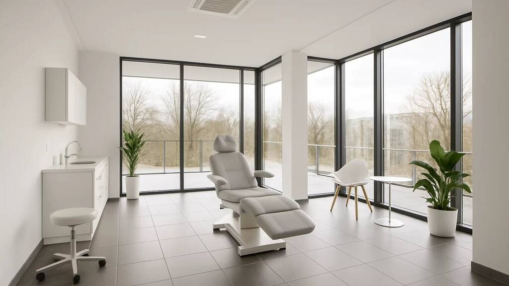 Große, umlaufende Fensterfronten für helle Behandlungsräume