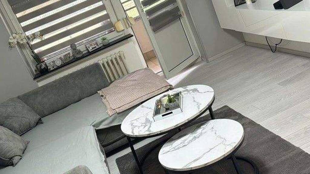 Die Wohnung wurde 2023 renoviert und verfügt über eine maßgeschneiderte Einbauküche in Schwarz-Weiß mit allen Elektrogeräten.
