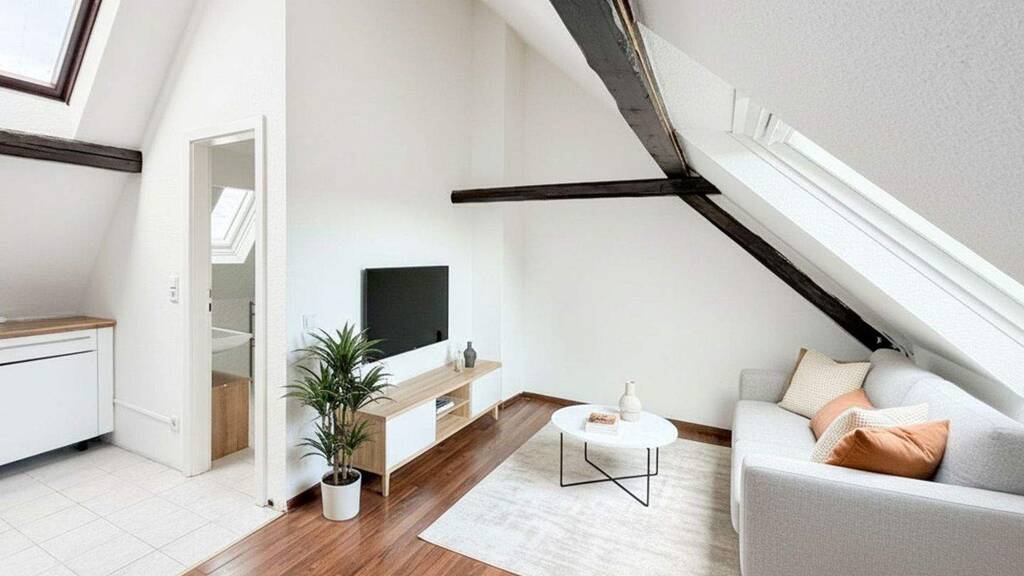 Schon beim Betreten dieser Dachgeschosswohnung entfaltet sich eine besondere Wohnatmosphäre, die Ruhe, Helligkeit und Geborgenheit miteinander verbindet. Über den Dächern gelegen, entsteht hier ein Rückzugsort, der Abstand vom Alltag schafft und gleichzeitig ein Gefühl von Zuhause vermittelt. Die rund 56 m² Wohnfläche sind durchdacht gestaltet und bieten eine harmonische Balance aus Offenheit, Struktur und Funktionalität - ideal für Menschen, die Wert auf ein stimmiges Wohnumfeld legen.