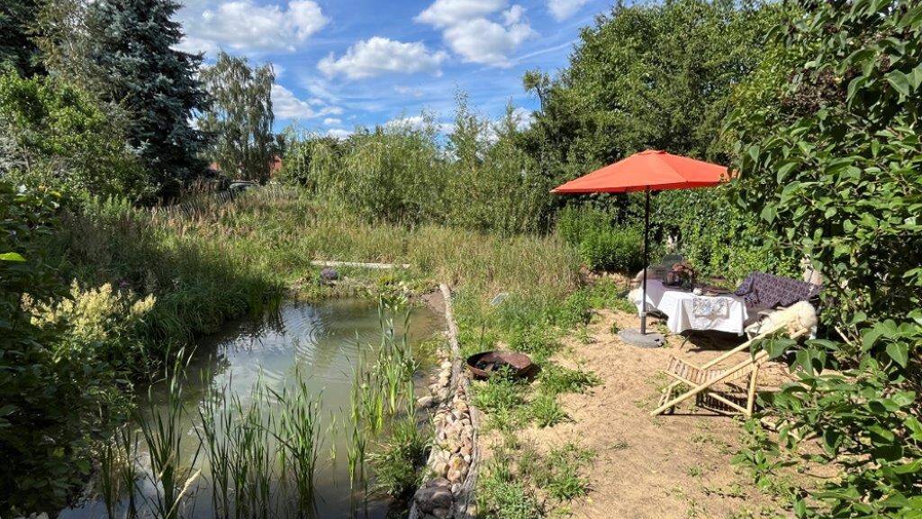 Gemütliches Familienidyll mit kleinem Teich, naturbelassenem Garten und Nebengelass