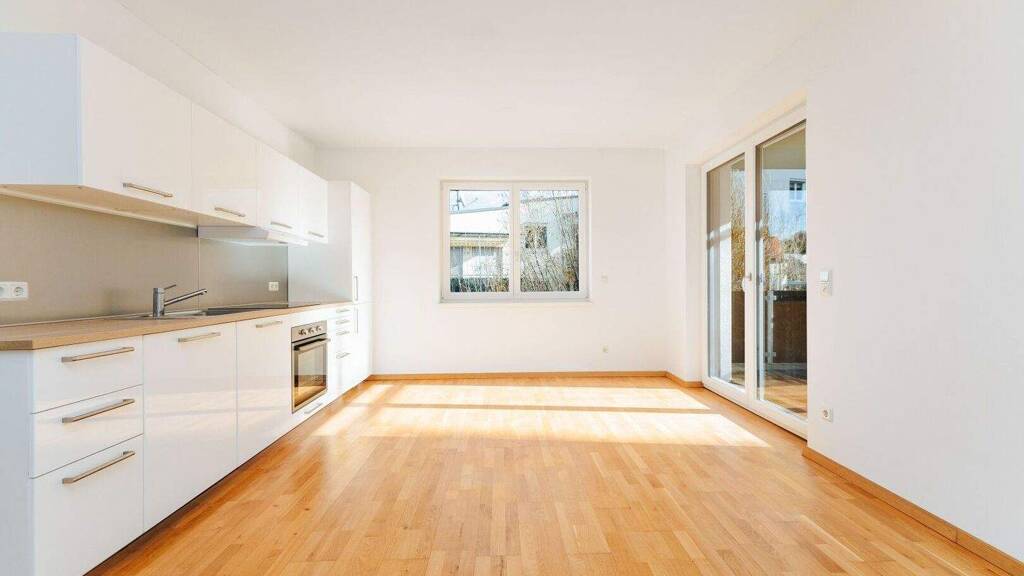 Schon beim Betreten der Wohnung überzeugt der großzügige Vorraum mit modernen Fliesen und ausreichend Platz für eine stilvolle Garderobe. Von hier aus gelangen Sie in das hochwertig ausgestattete Badezimmer mit Dusche und Waschmaschinenanschluss sowie in die separate Toilette. Eine edle Glastür führt Sie in den hellen, offenen Wohn- und Essbereich - das Herzstück dieser Wohnung. Große Fensterflächen sorgen für ein lichtdurchflutetes Ambiente, während die moderne Einbauküche mit Kühlschrank, Gefrierschrank, Backofen, Ceranfeld, Dunstabzug, Spülbecken und Geschirrspüler höchsten Komfort bietet.