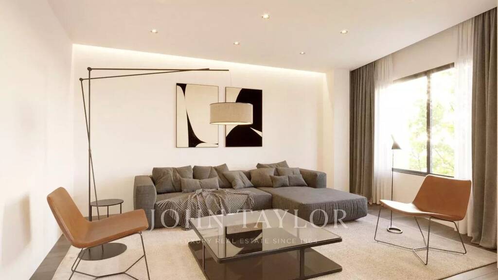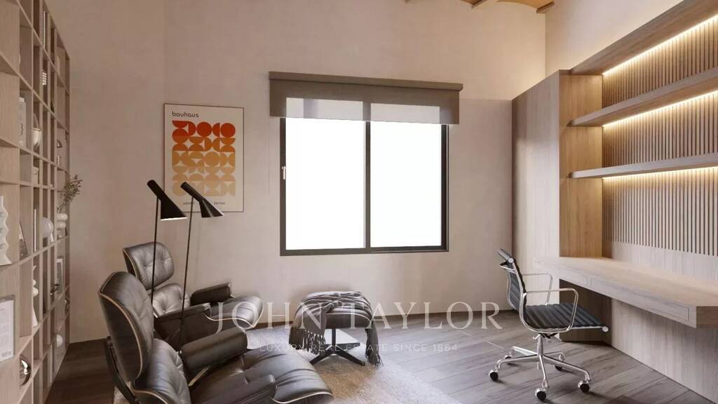 Das Projekt sieht eine 200 m2 große Wohnung vor, die über zwei geräumige Schlafzimmer mit eigenem Bad, eine moderne Küche, einen Essbereich, ein gemütliches Wohnzimmer, ein Büro und eine Waschküche verfügt. Die Wohnung hat zwar keine Terrasse, ist aber mit großen Fenstern in jedem Raum ausgestattet, die für viel natürliches Licht im ganzen Haus sorgen.
