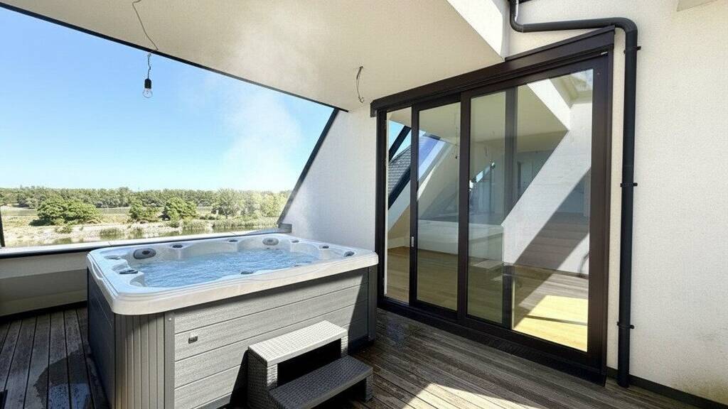 Herzstück der unteren Ebene ist ein ca. 102?m² großes Wohn- und Esszimmer, das sich harmonisch in Wohn- und Küchenbereich gliedert. Von der offen gestalteten Wohnküche aus betreten Sie zwei sonnige Terrassen mit traumhaftem Blick über die Donau - ein echtes Highlight dieser Immobilie. Die beiden Terrassen werden durch zwei zusätzliche Räume ergänzt - einer davon ist bereits für den Anschluss einer Sauna vorbereitet. Das lichtdurchflutete Badezimmer mit großem Fenster befindet sich zentral zwischen zwei Schlafzimmern und ist somit von beiden Räumen bequem erreichbar. Im oberen Geschoss befindet sich ein loftartiges Master-Schlafzimmer mit einem eigenen, stilvoll ausgestatteten Badezimmer - inklusive Dusche, freistehender Badewanne sowie einem getrennten WC. Dieser Rückzugsort bietet Ihnen maximale Privatsphäre und Komfort auf höchstem Niveau. Zudem stehen Ihnen zwei Tiefgaragenstellplätze sowie zwei großzügige Kellerabteile mit insgesamt ca. 13?m² zur Verfügung.