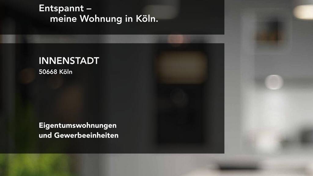 In der Stadt pulsiert das Leben. Das zentrumsnahe Kunibertsviertel erstreckt sich zwischen Rhein, Theodor-Heuss-Ring, Turiner Straße und Kölner Hauptbahnhof. Hier sind Hochschule für Musik und Tanz und das Institut der deutschen Wirtschaft ansässig. Das Kunibertsviertel wird von den beliebten Veedeln Eigelstein- und Agnesviertel umgeben. Ladengeschäfte, Restaurants aller Art, Cafés, Bars und kleine Hotels prägen das Bild. Die Domstraße, eine Seitenstraße zu den Hauptverkehrsachsen des Viertels, liegt im Stadtbezirk Innenstadt / Stadtteil Altstadt-Nord. Die Straße führt von Norden genau auf den Dom zu. Wenige Meter sind es bis zur Neusser Straße und zum Eigelstein. Hier befinden sich alle wichtigen Einkaufs-Locations. Die Anbindung an den öffentlichen Nahverkehr ist mit einigen Stadtbahnlinien und Buslinien an den Haltestellen am Ebertplatz hervorragend. Über den Ring gelangt man in wenigen Gehminuten zur S-Bahnstation Hansaring. Zum Dom und Hauptbahnhof sind es rund 15 Minuten zu Fuß. Nur eine Straßenquerung trennt die Domstraße vom Theodor-Heuss-Park, der als grüne Oase mit Weiher gerade im Sommer zum Entspannen und Verweilen einlädt. Ihre persönliche Relax- und Sportzone liegt fast vor der Haustür. Der Rhein ist in wenigen Minuten fußläufig zu erreichen. Der Tag kann entspannt beginnen.