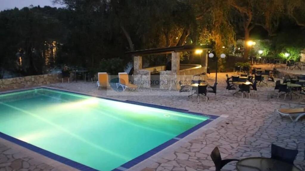 Das Strandhotel auf der Insel Paxos hat eine Nutzfläche von ca. 1.860 qm auf einem Grundstück von 9.500 qm. der an einem Strand mit türkisfarbenem Wasser endet.