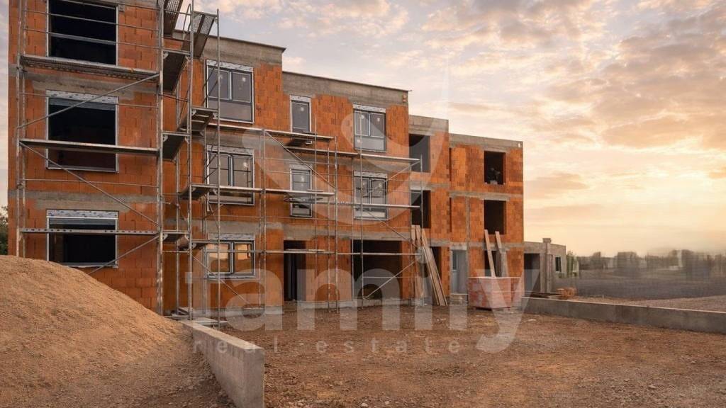 Die Wohnung wurde mit besonderem Augenmerk auf Qualität und Energieeffizienz errichtet. Das Gebäude erhält eine 10 cm dicke Wärmedämmfassade, die Böden sind mit hellen Keramikfliesen ausgelegt. Anthrazitfarbene PVC-Fenster und -Türen mit Dreifachverglasung und Moskitonetzen werden eingebaut. Das Wohnzimmer ist mit großen Hebe-Schiebe-Glaswänden ausgestattet, die viel Tageslicht hereinlassen und eine fließende Verbindung zwischen Innen- und Außenbereich schaffen.