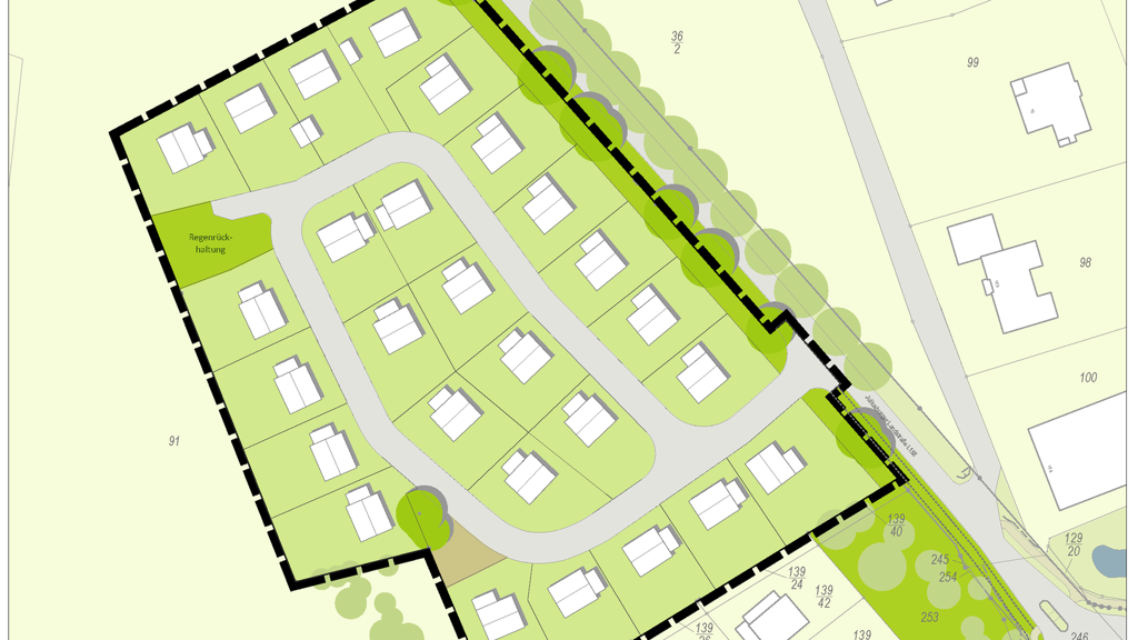 Das familiengerechte Wohnquartier wird durch die Zulässigkeit von Einzel- und Doppelhäusern im gesamten Plangebiet abgerundet.