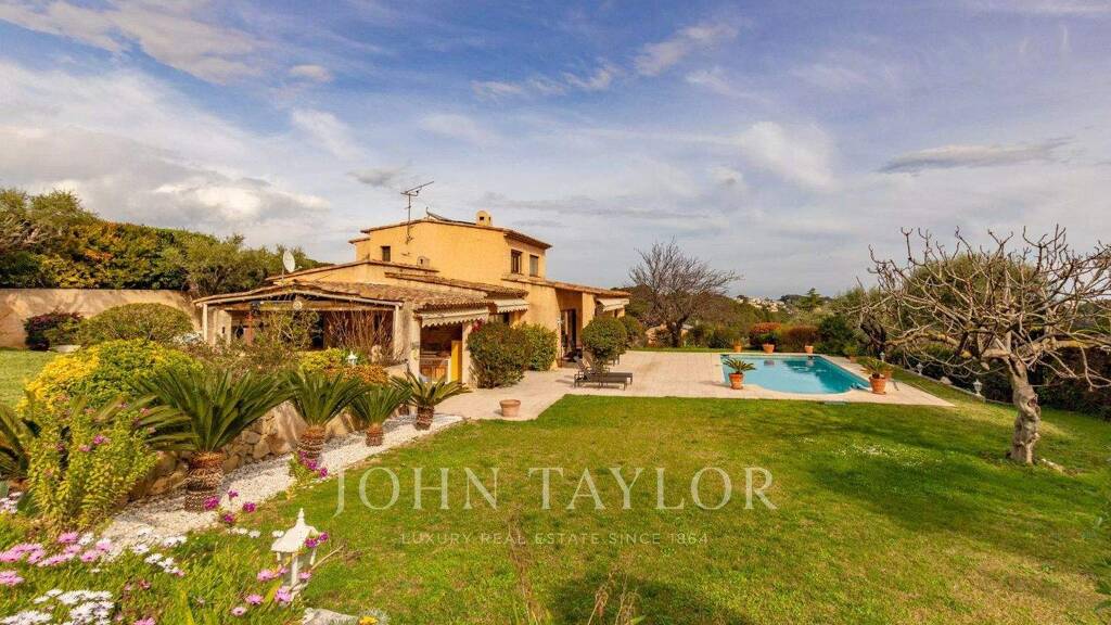 Nichée sur les hauteurs d'Antibes avec vue dégagée jusqu'à la mer, cette villa de charme jouit d'une exposition sud généreuse. Les façades dorées, les terrasses orientées sur un jardin magnifiquement arborisé avec oliviers productifs, abricotiers et arbre à citron, invitent à profiter pleinement du climat méditerranéen. La piscine bien exposée, la cuisine d'été et l'accès direct à la terrasse depuis le salon complètent ce cadre de vie exceptionnel.