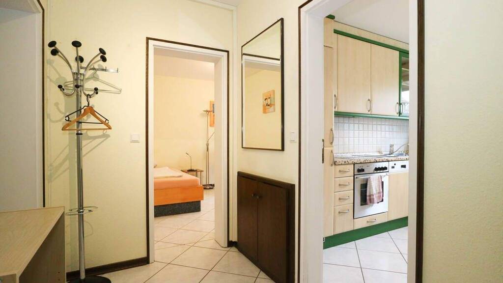 Beim Betreten der Wohnung empfängt Sie eine großzügige Diele, von der aus alle Räume bequem erreichbar sind. Direkt am Eingang befindet sich ein praktischer Abstellraum mit genügend Stauraum für Haushaltsgegenstände oder Vorräte.