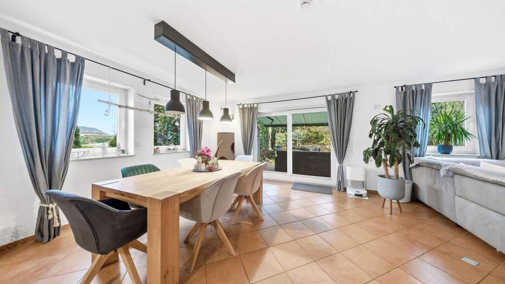 Im Fokus steht ein energiesparendes Wohnkonzept: Eine Erdwärmepumpe, Solarthermie, eine Photovoltaikanlage mit 9,66 kWp und 10,36 kW Batteriespeicher sowie eine 5.000 Liter Regenwasserzisterne sorgen für effiziente Ressourcennutzung und niedrige Betriebskosten. Die Energieeffizienzklasse A (39,2 kWh/(m²a), Stand 05/2021) unterstreicht den nachhaltigen Charakter dieser Immobilie.