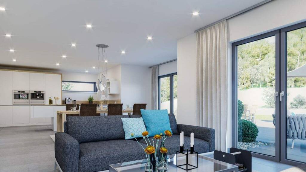+ Rollläden in elektrischer Ausführung + Smart Home" Elektro-Installation für die gesamte Licht- u. Rollladen-Steuerung + komplette Sanitärverrohrung (Abwasser / Zuwasser) + 100 Außenputzfarben zur Wahl + Holz-Haustür (KERA) im gehobenen Design und 5-fach Absicherung + 4 Wärmepumpen-Systeme Auswahl: z.B. Sole-Wasser WP inkl. FBH u. Erd-Bohrungen oder preisgleich Doppel-Wärmepumpe (Komfort-Klimatisierung inkl. Kühlfunktion, CO2- und Feuchteregelung für höchsten Wohnkomfort)